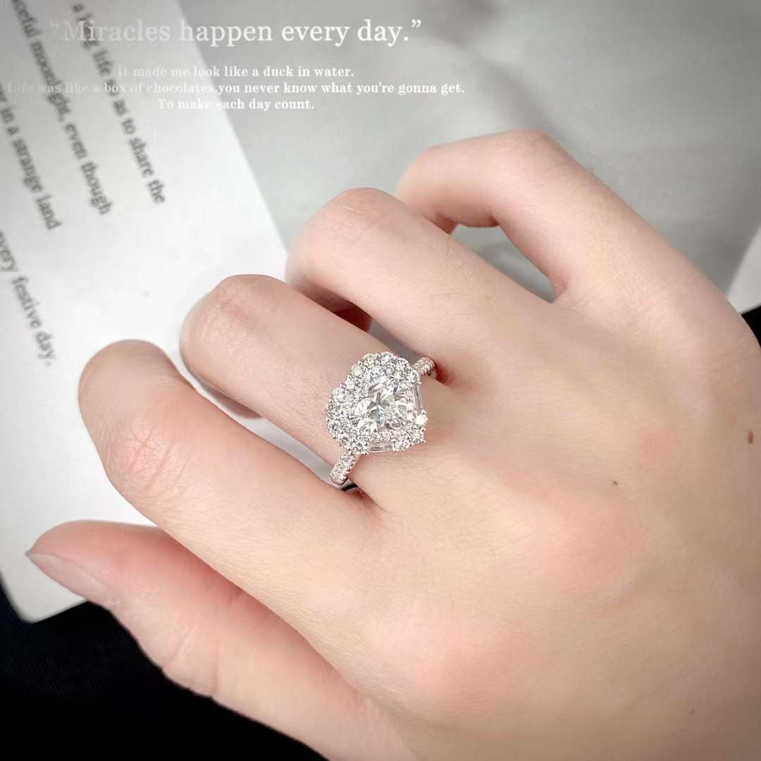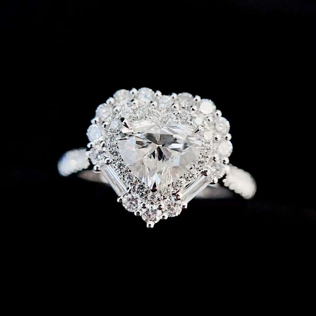 Aurora Heart Halo Diamond Ring – Heart Cut Lab-Grown Diamond Engagement Ring - 1.00 CT / 925 Silver