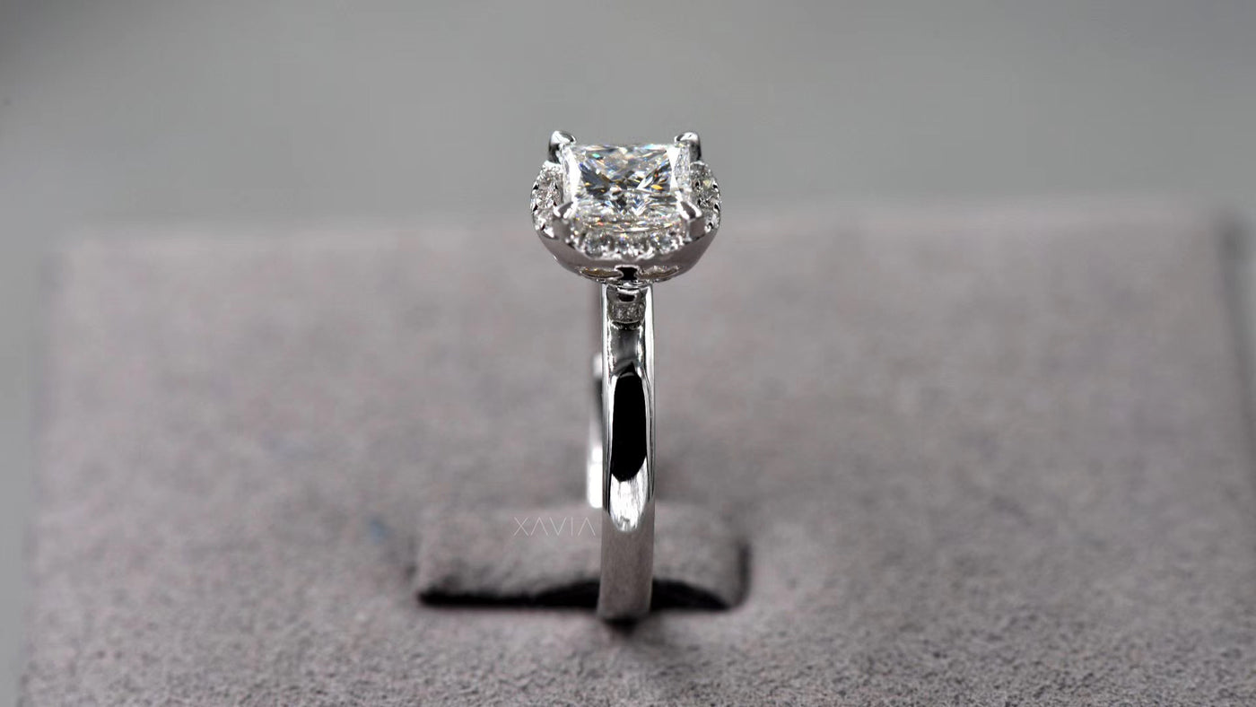 Celestique Crescent Halo – Princess Cut Lab-Grown Diamond Engagement Ring - 1.00 CT / 925 Silver