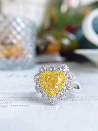 Solviora – Heart-Shaped Fancy Yellow Diamond Ring - 0.50 CT / 925 Silver